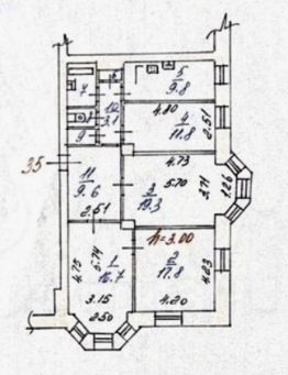 Перегородки не капитальные, что позволит воплотить планировку по вашему желанию. Так же в квартире два эркера.