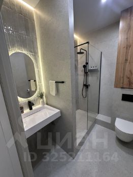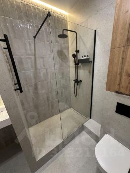 Современно обустроен санузел с умной системой теплый пол и качественной сантехникой, с местами хранения вещей и бойлером. Под раковиной предусмотрена установка стиральной машины.