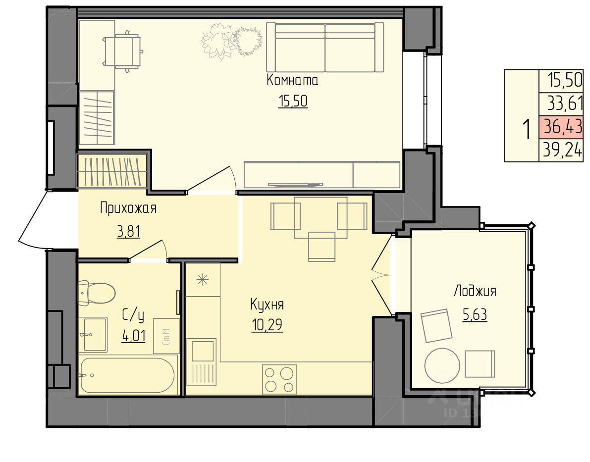 36,43 м²