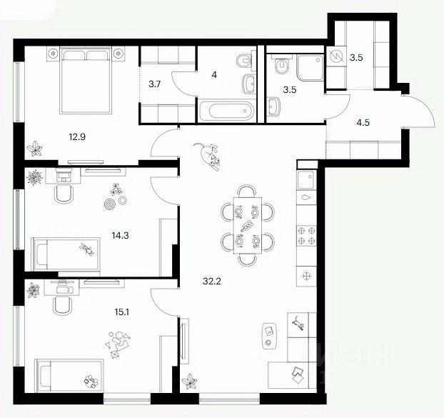 Площадь кухни32,2 м²