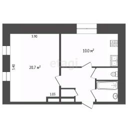 Общая площадь 41.8 кв. м грамотно распределена: просторная жилая зона в 30 кв. м и уютная кухня площадью 10 кв. м,