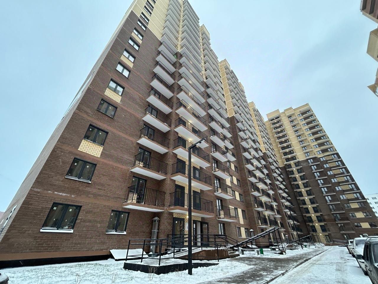 - Благоустроенная дворовая территория: удобные пешеходные зоны и места отдыха, озеленение, детские площадки