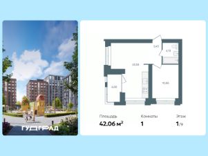 Продаётся 1-комнатная квартира в строящемся доме (Стр. 1 этап 3), срок сдачи: I-кв. 2028, общей площадью 42.06 кв.м., на 1 этаже. Новый центр Заволжского района.
