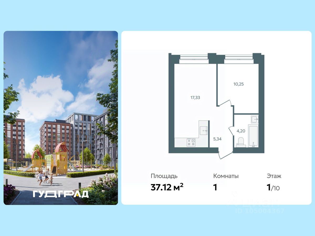 Продаётся 1-комнатная квартира в строящемся доме (Стр. 1 этап 3), срок сдачи: I-кв. 2028, общей площадью 37.12 кв.м., на 7 этаже. Новый центр Заволжского района.