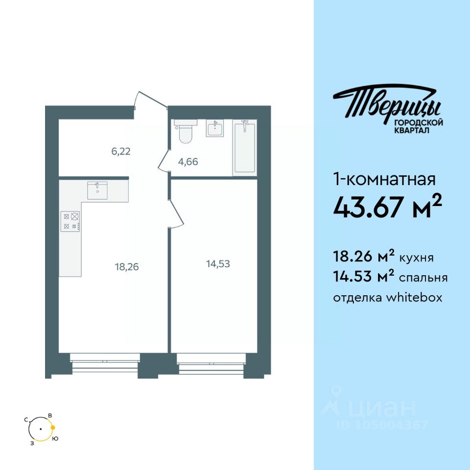 Продаётся 1-комнатная квартира в строящемся доме (Стр. 1 этап 3), срок сдачи: I-кв. 2028, общей площадью 43.67 кв.м., на 7 этаже. Новый центр Заволжского района.