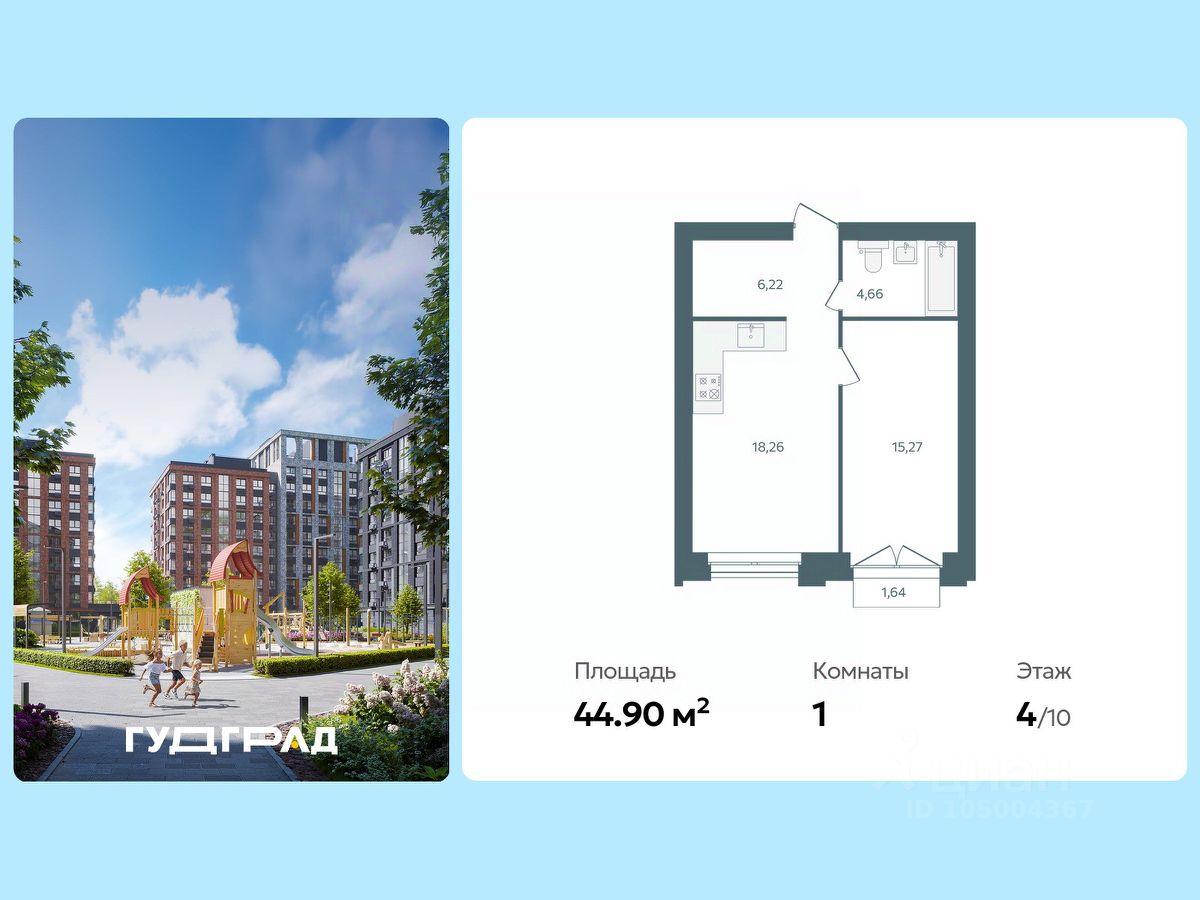 Продаётся 1-комнатная квартира в строящемся доме (Стр. 1 этап 3), срок сдачи: I-кв. 2028, общей площадью 44.9 кв.м., на 4 этаже. Новый центр Заволжского района.
