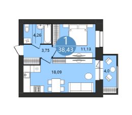 Общая площадь38,43 м²