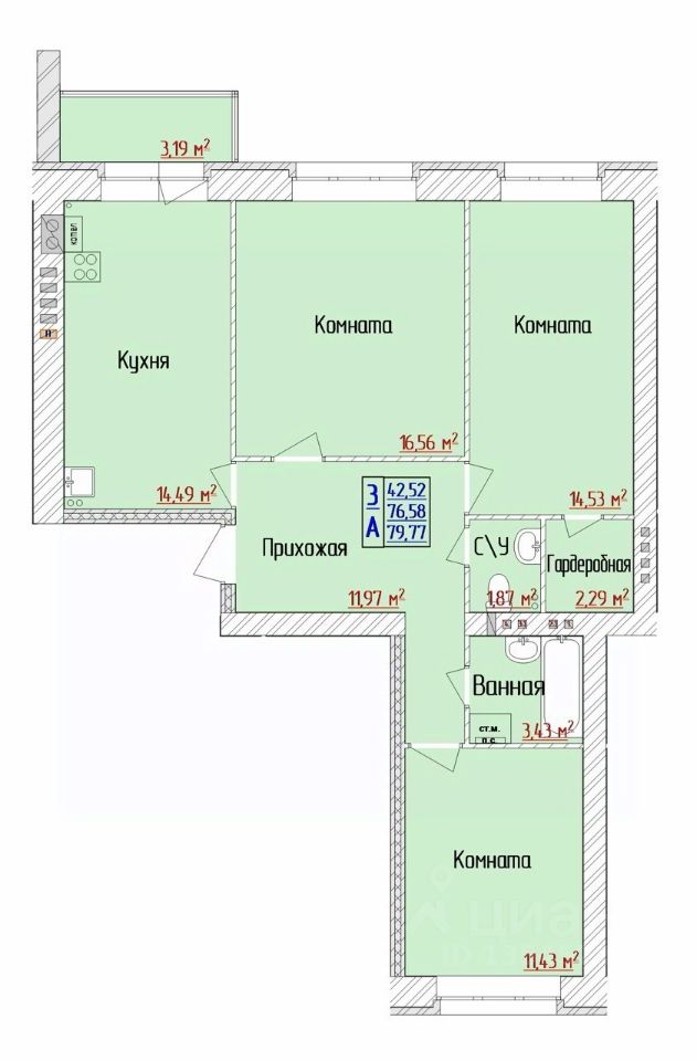Продаётся 3-комнатная квартира в строящемся доме (дом 12), срок сдачи: II-кв. 2026, общей площадью 79.77 кв.м., на 1 этаже. ЖК "Ярославский" это комплекс из современных, надежных и теплых двухсекционных домов с грузопассажирскими лифтами. Он ориентирован на практичных людей, которые смогут оценить комфорт городской жизни в благоприятном, с точки зрения экологии, районе. В шаговой доступности все элементы инфраструктуры: два детских садика, школа, физкультурно- оздоровительный комплекс, поликлиника, почта, отделение банка, магазины и остановки транспорта общего пользования. Благоустроенная придомовая территория предполагает размещение площадок для отдыха и игр детей, парковочных мест для автомобилей, установку контейнерных площадок для мусора, устройство газонов, посадку деревьев и кустарников. Все перечисленные аспекты+привлекательная цена станут убедительными доводами в пользу ЖК "Ярославский" при выборе недвижимости, а проживание в нем - комфортным.