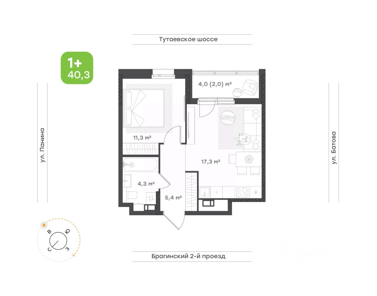 Общая площадь40,3 м²