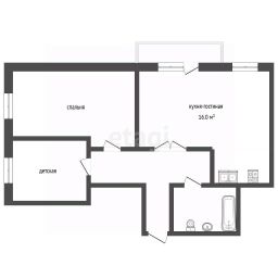 Практичная планировка: Просторная гостиная, совмещенная с кухней, и две изолированные комнаты.