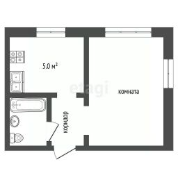 Планировка функциональная: компактный коридор ведет в совмещенный санузел, отделанный качественной плиткой, с современной сантехникой, не требующей замены. Жилое пространство объединено с кухонной зоной, что оптимально для одного человека или пары. Вся мебель и бытовая техника, представленная на фото, остается новому владельцу — можно заезжать и жить без дополнительных вложений.