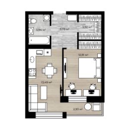 Отделка - готовая чистовая отделка в светлых нейтральных тонах.Сантехника, электрика, мебель (шкафы, мягкая мебель, кровать)Кухня (кухонный гарнитур, кухонный стол, стулья, освещение)Бытовая техника (Холодильник, посудомойка, вытяжка, варочная панель, духовой шкаф)Декор и текстиль, который дополнит интерьер и сделает его уютным для вашего проживания)