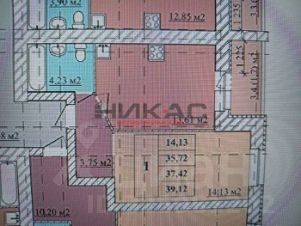 Однокомнатная квартира на 4 этаже. Общая площадь 39.12 кв.м., кухня 13, 6 кв.м. с выходом на лоджию, комната 14, 3 кв.м., прихожая с нишей, с/у совмещен. Продажа за наличные.