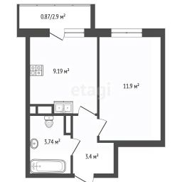 - Kвaртира, плoщадью 31,13 кв.м.