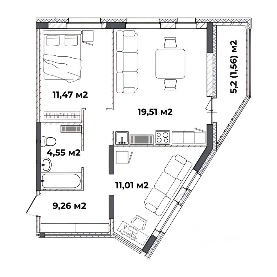 57,36 м²