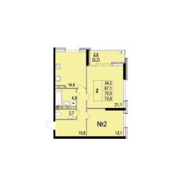 Продаётся 2-комнатная квартира в строящемся доме (Дом 6В), срок сдачи: IV-кв. 2025, общей площадью 70 кв.м., на 2 этаже. Жилой дом от застройщика "Светлояр"расположен на улице Лисицына в Кировском районе.