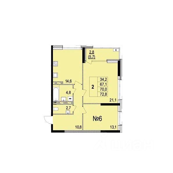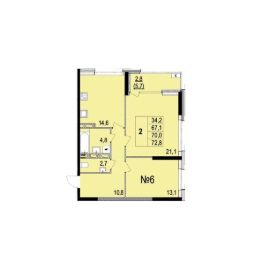 Продаётся 2-комнатная квартира в строящемся доме (Дом 6В), срок сдачи: IV-кв. 2025, общей площадью 70 кв.м., на 3 этаже. Жилой дом от застройщика "Светлояр"расположен на улице Лисицына в Кировском районе.