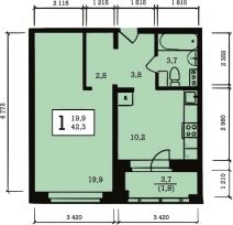 Общая площадь42,3 м²