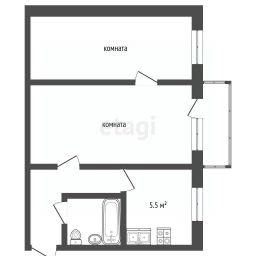 Планировка с двумя смежными комнатами жилой площадью 36 кв. м и кухней 5.5 кв. м функциональна. В собственности находится полезный дополнительный объем — просторный погреб под кухней площадью около 4 кв. м.