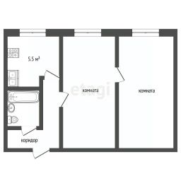 Общая площадь: 43,5 м². Кухня: 8 м².