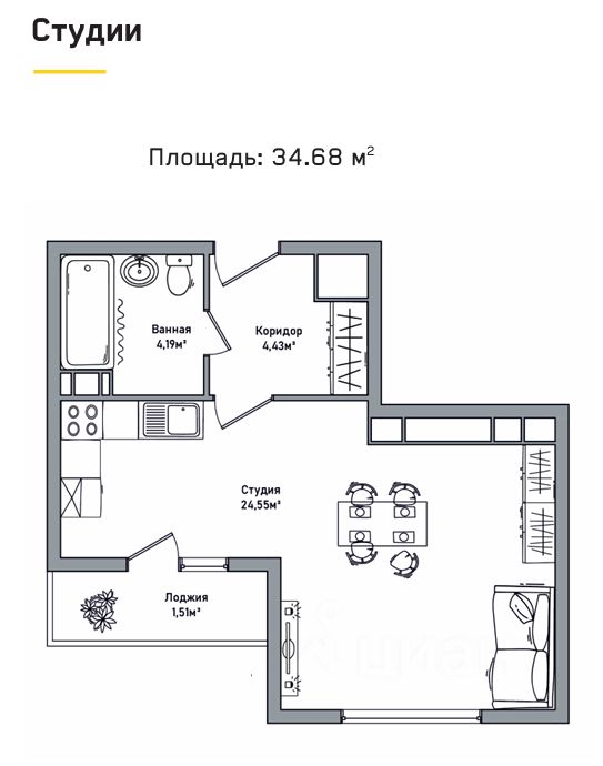 - Единое пространство с продуманным зонированием - 24,5м2