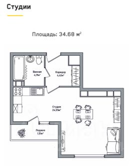 Продается квартира площадью 34,7м2 в ЖК Рассвет литер 5 площадью 34,7м2