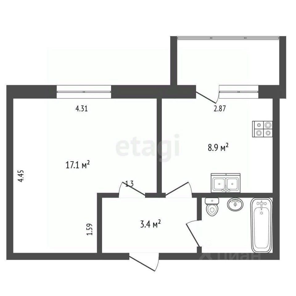 Балкон застеклён, что обеспечивает дополнительное пространство и удобство. Коммуналка радует низкими платежами, расположение удобное — всего 4 километра от города.