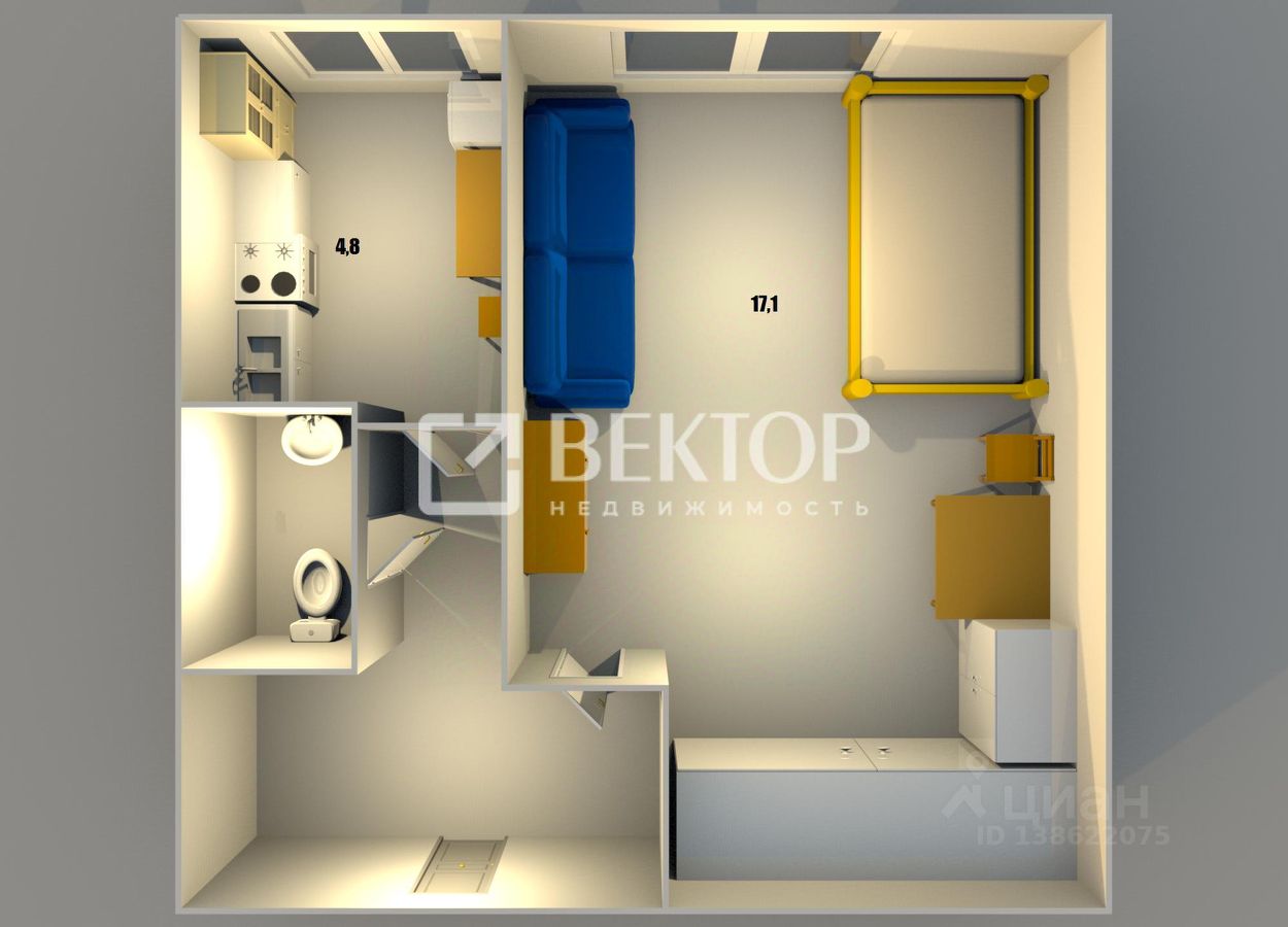 Уютная квартира в двухэтажном кирпичном доме предлагает гармонию комфорта и практичности. Её общая площадь в 29.6 м продумана до мелочей, создавая ощущение простора и уюта. На первом этаже здания вы найдёте всё необходимое.