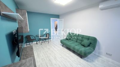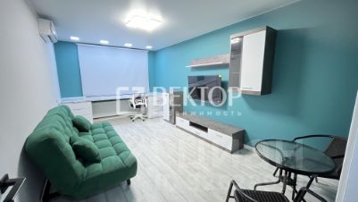 В гостиной вас встретит комфортный диван с механизмом "книжка" насыщенного изумрудного цвета - обивка из велюра, спальное место размером 200145 см. Светлая рабочая зона у окна будет удобна как при дневном, так и при искусственном освещении - столешница из износостойкого пластика размером 140300 см позволит комфортно разместиться вдвоём. Розетки, интернет и HDMI-кабели проложены под столом, есть выдвижные шкафы с доводчиками, электроштора blackout с дистанционным управлением и люстра с множеством режимов работы и отдельным пультом. Также в гостиной установлена минималистичная стенка с подсветкой и стеклянными витринами.