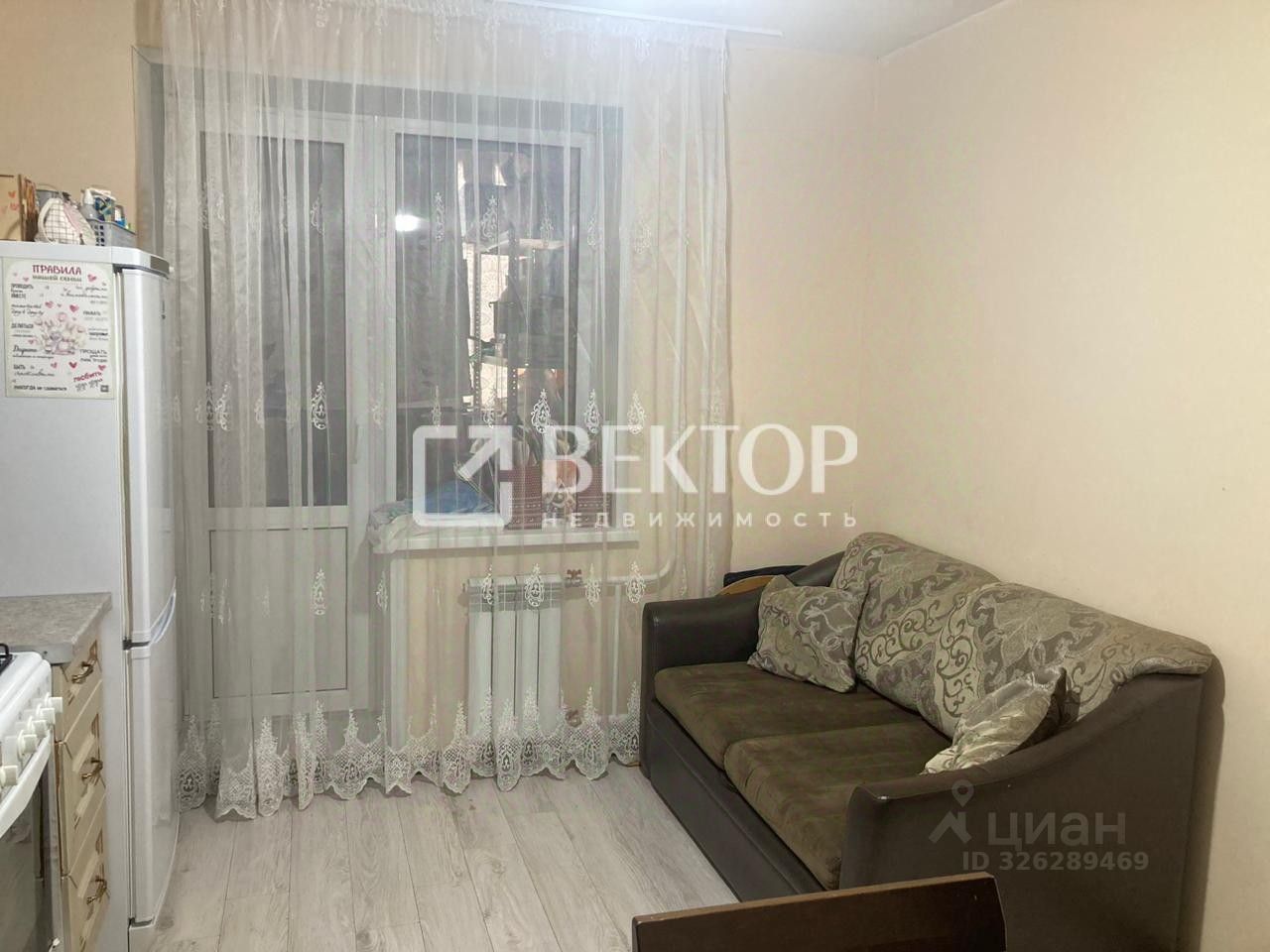 Квартира-вторичка расположена на 3-м этаже 11-этажного монолитно-кирпичного дома. Общая площадь - 46 м, из них жилая площадь - 21 м, площадь кухни - 12 м. В квартире остаётся всё, кроме телевизора и детского шкафа. В подъезде есть общая кладовая, а соседи - хорошие и дружелюбные.