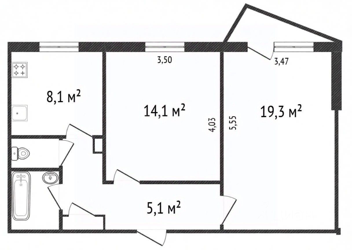 Мебель в комнатах (кровать, шкафы и пр. — по договоренности).