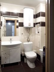 Квартира полностью готова к проживанию и, в дополнение ко всему, в квартире установлен кондиционер и водонагреватель, обеспечивающий горячую воду в период сезонных отключений. Санузел совмещенный и отделан качественной керамической плиткой.