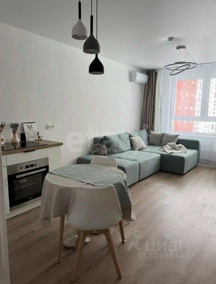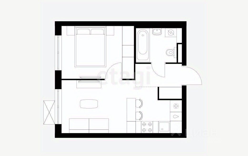 Просторная кухня-гостиная, изолированная спальня, совмещенный санузел, импровизированная гардеробная (закрывается шторой).