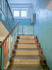 Расположена комфортном первом эаже пятиэтажного панельного дома.
