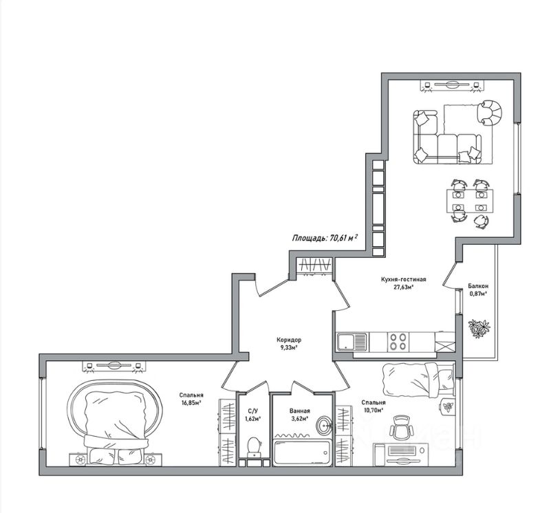 Интересная и функциональная планировка.