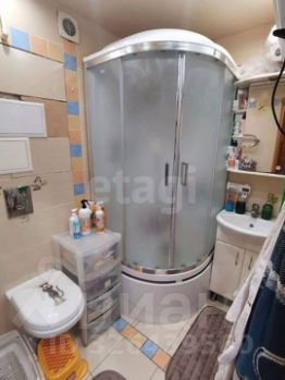Ванная комната совмещенная, с современной душевой кабиной и стильным оформлением.