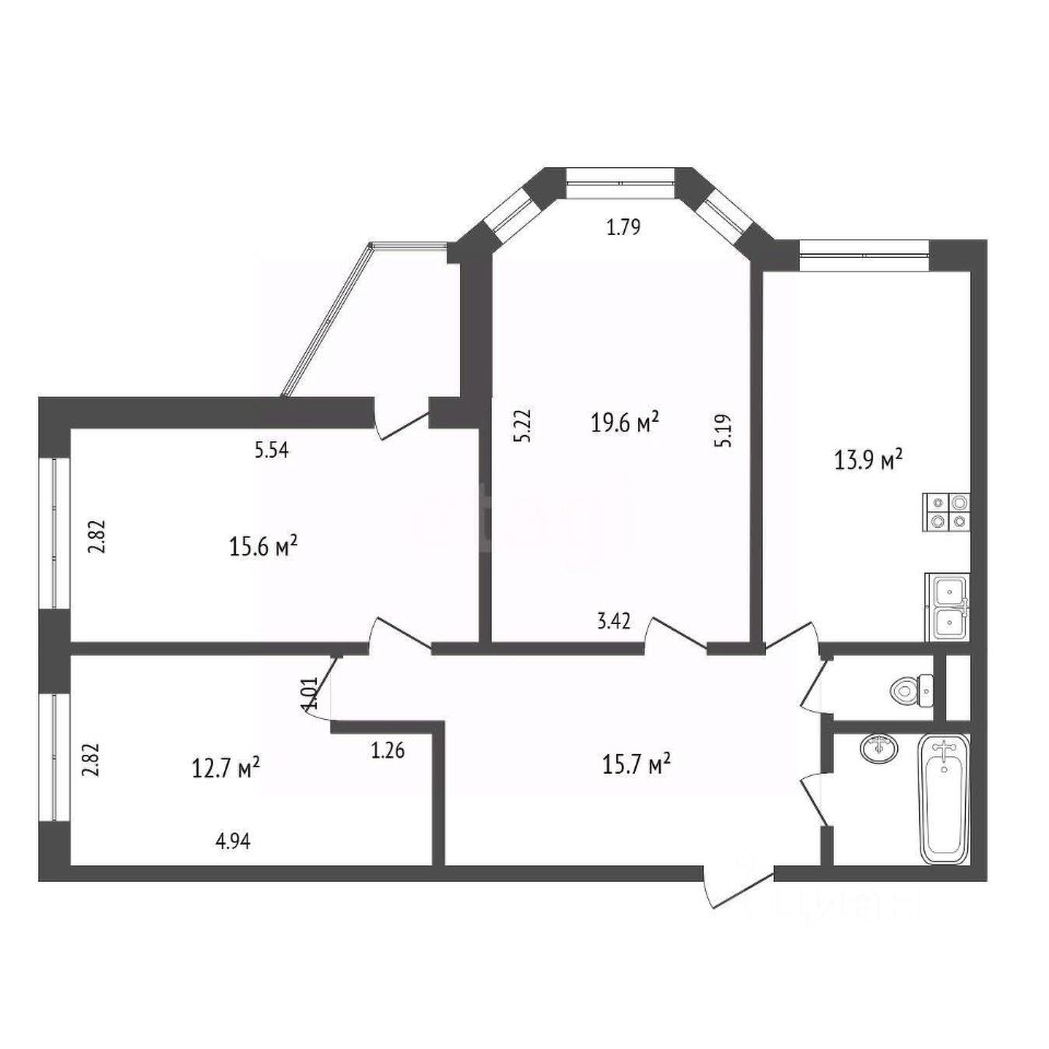 Площадь кухни13,9 м²