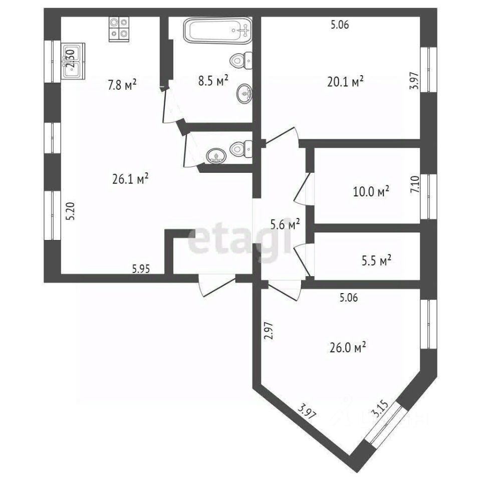 4 комнатная квартира с большой кухней - гостиной.