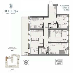 Продаётся 4-комнатная квартира в строящемся доме (Корпус 1), срок сдачи: IV-кв. 2026, общей площадью 98.18 кв.м., на 5 этаже. Новый жилой комплекс на ул. Кирпичная от застройщика "Наследие".