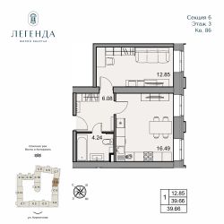 Продаётся 1-комнатная квартира в строящемся доме (Корпус 1), срок сдачи: IV-кв. 2026, общей площадью 39.66 кв.м., на 3 этаже. Новый жилой комплекс на ул. Кирпичная от застройщика "Наследие".
