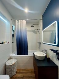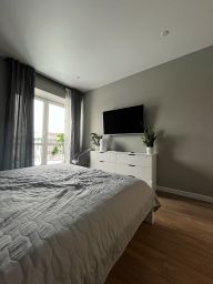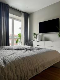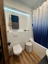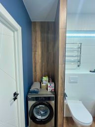В квартире сделан современный ремонт из качественных материалов, делали для себя. Везде , кроме спальни, сделаны теплые полы.