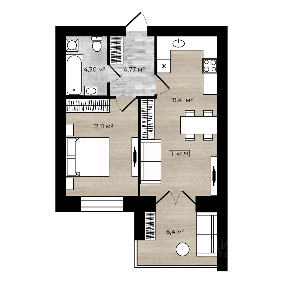 Преимущества квартиры: кухня-столовая и шикарный просторный балкон