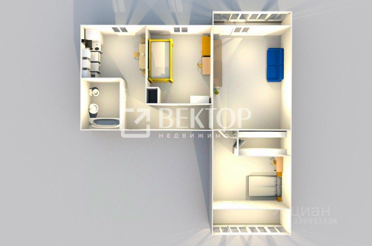 - 3 изолированные комнаты; окна на две стороны; тёплая, светлая.