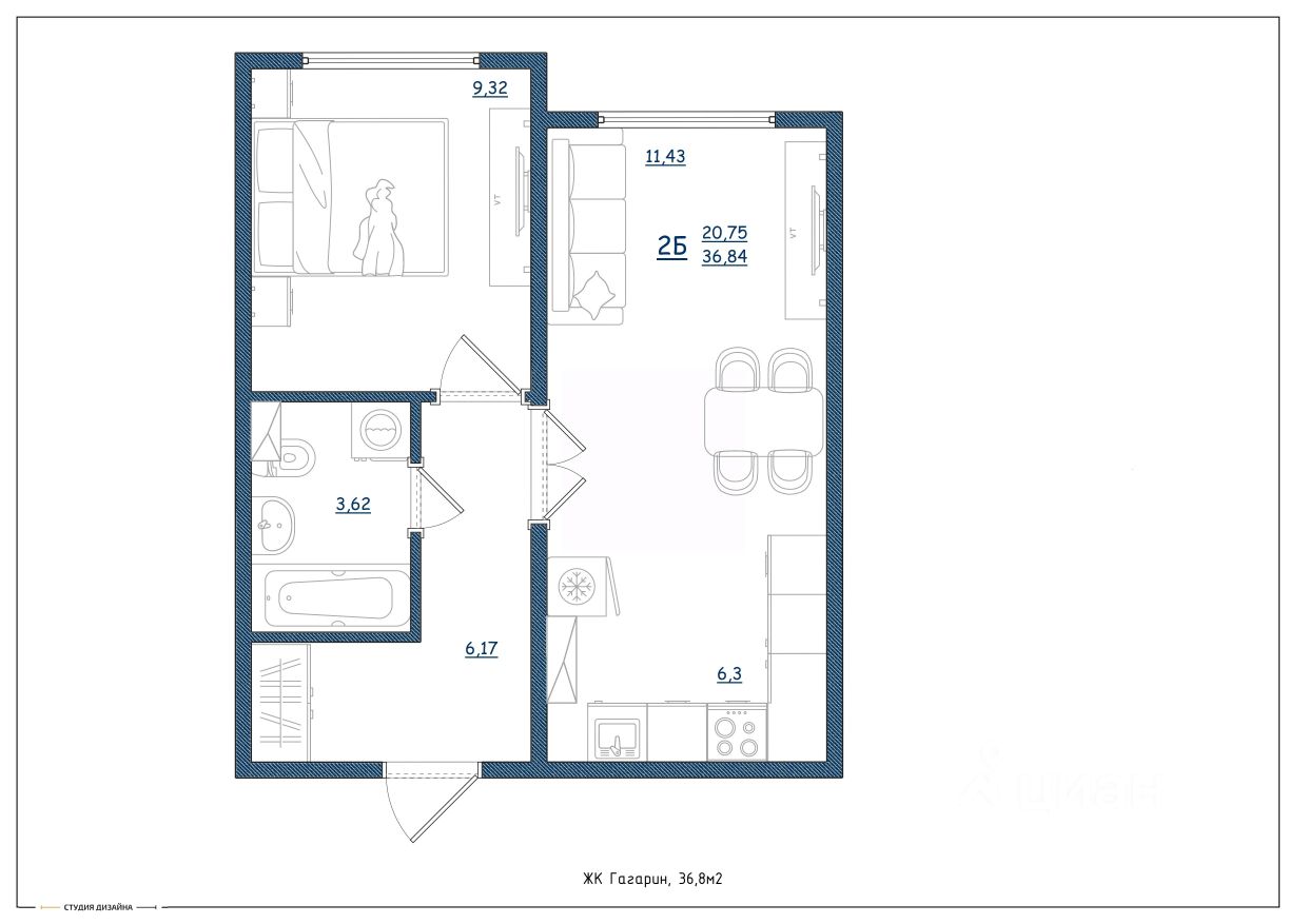 Общая площадь36,8 м²