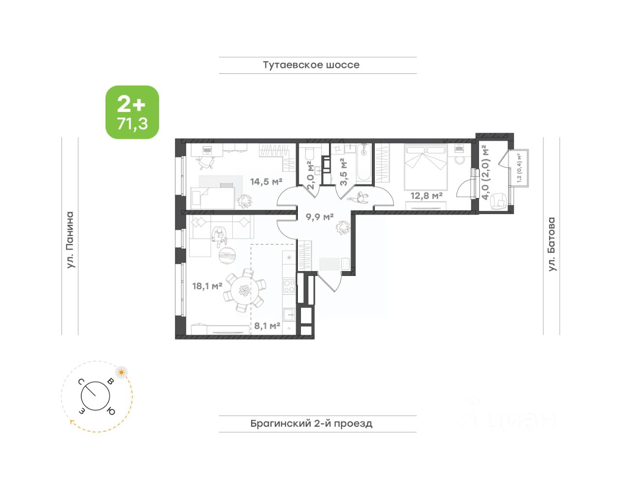 Семейная квартира формата 2+