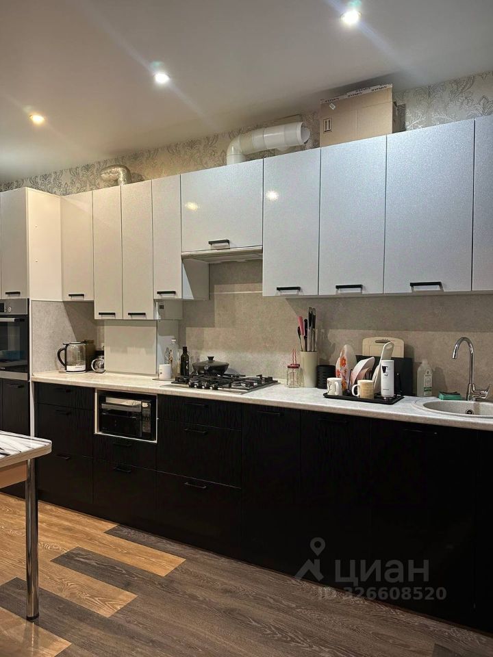 В квартире совмещенный санузел с современной сантехникой и плиткой. В просторной кухне остается современный кухонный гарнитур со встроенной техникой: духовым шкафом, газовой варочной поверхностью и вытяжкой.