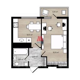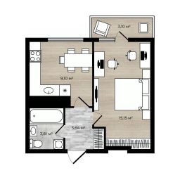 Квартира общей площадью 32,63м2