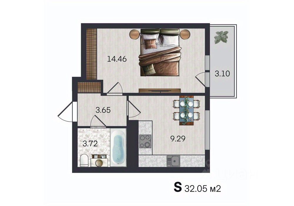 - ФУНКЦИОНАЛЬНАЯ кухня (9.3 м²) - готовьте и принимайте гостей с удовольствием.