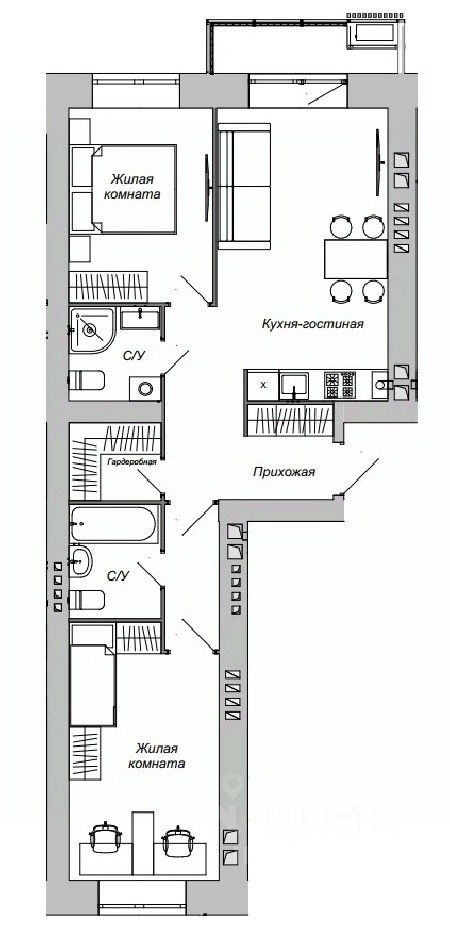 Квартира готова к финишной отделке и реализации индивидуального дизайна!
