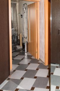 Полы в коридоре, ванной комнате, кухне и на лоджии - керамическая плитка ( в ванной с подогревом ).